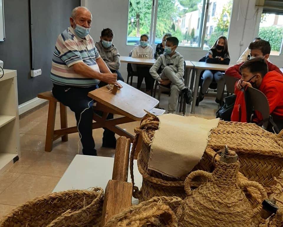 Los escolares de La Zubia aprenden a trabajar el esparto de la mano de artesanos locales