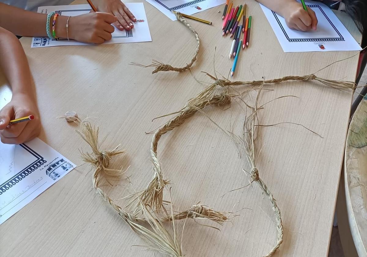 Los escolares de La Zubia aprenden a trabajar el esparto con artesanos locales