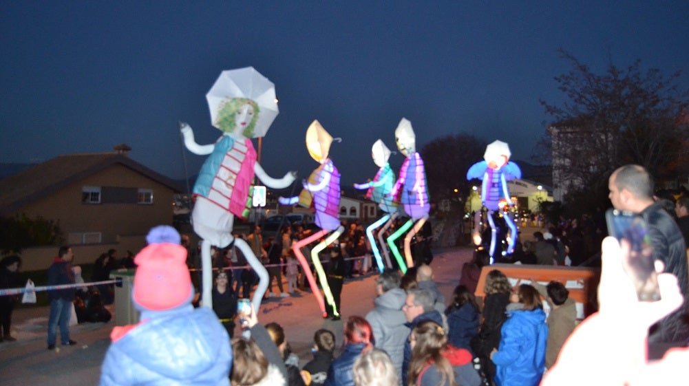 Una de las sorpresas de este año han sido las marionetas gigantes, que iluminaron aún más el espectáculo itinerante callejero, donde también han participado unos vecinos verdaderamente ilusionados.