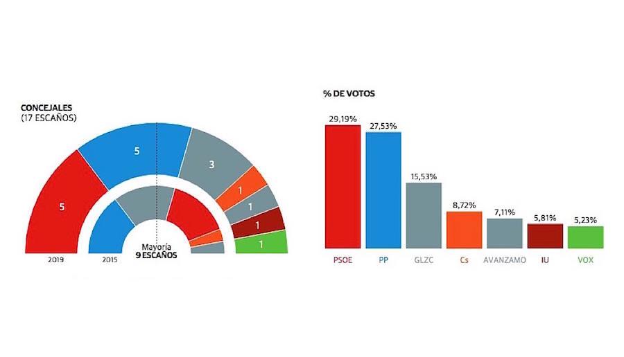Socialistas y 'populares' sacan cinco concejales en una corporación de siete partidos, con la entrada de Vox