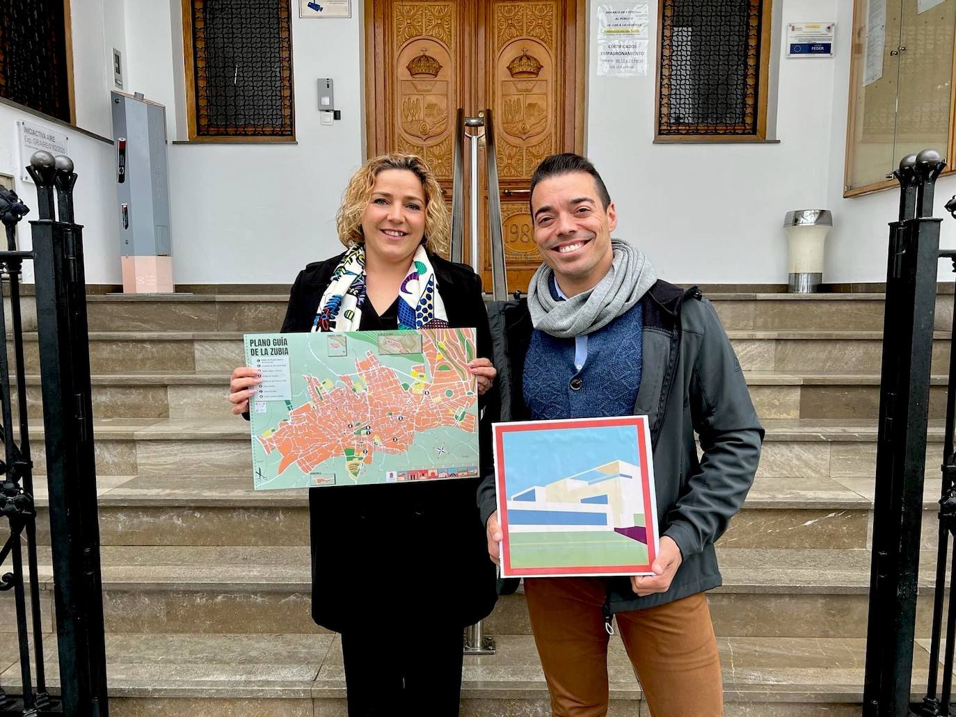 La alcaldesa de La Zubia, Puri López, y el concejal de Turismo, Daniel Aguilera, han presentado este nuevo callejero, que estará disponible en todos los comercios de La Zubia que lo deseen. El plano incluye un logotipo diseñado especialmente para identificar la ubicación de los lugares más emblemáticos del municipio.