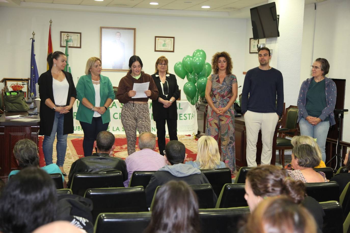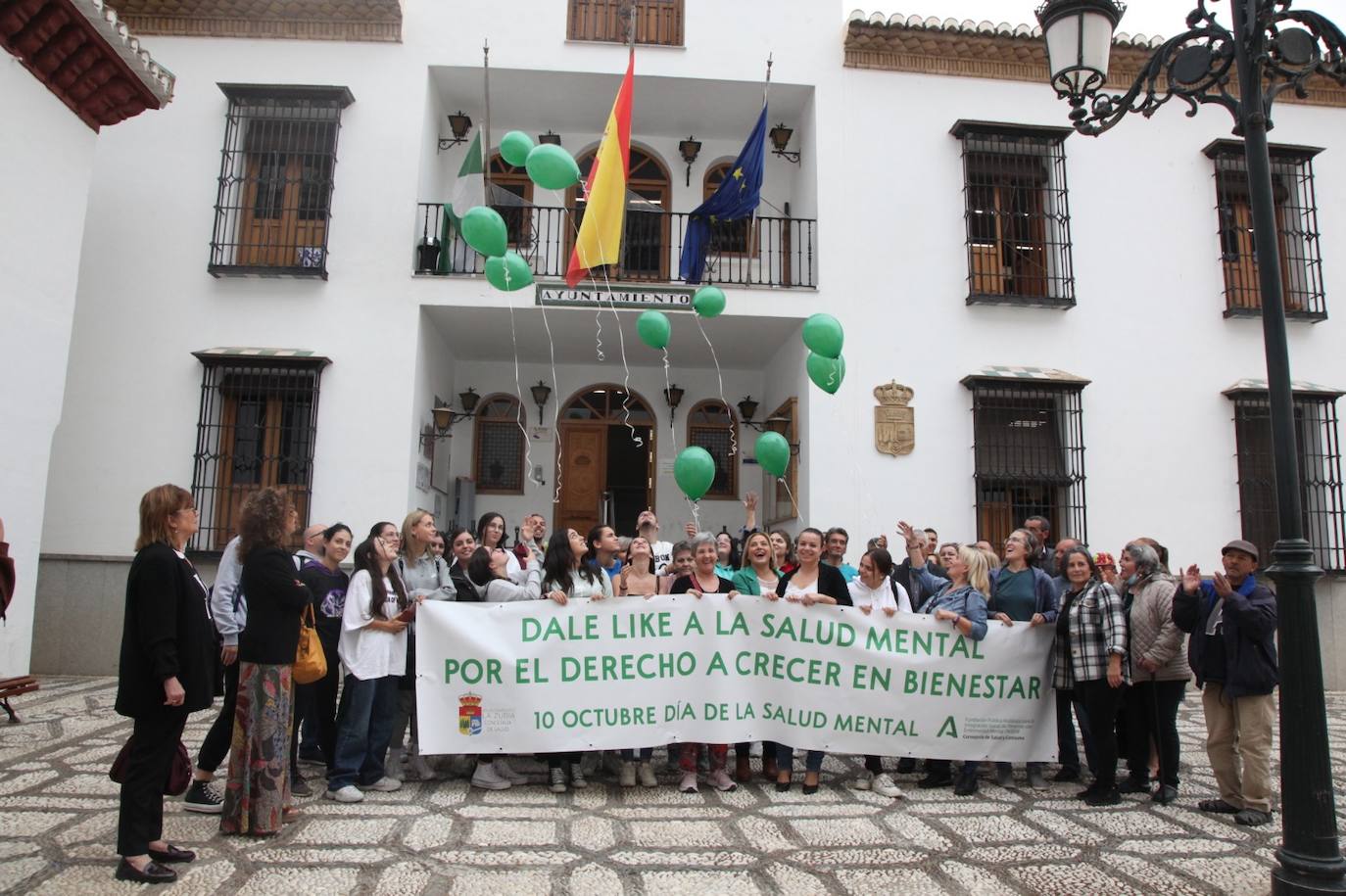 A continuación, se leyó un manifiesto con motivo del Día Mundial de la Salud Mental en la puerta del Ayuntamiento bajo el lema de este año, 'Dale like a la salud mental. Por el derecho a crecer en bienestar'. Posteriormente se soltaron globos de helio de color verde.
