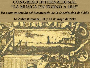 Un congreso internacional reunirá en la localidad granadina de La Zubia, bajo el título 'La música en torno a 1812', a expertos de todo el mundo para tratar sobre aspectos musicales relacionados con la Constitución de Cádiz y su contexto. La celebración, con que se conmemora el bicentenario de 'La Pepa', es una iniciativa del Grupo de Investigación Patrimonio Musical de Andalucía - HUM263 y está organizado por la Universidad de Granada, la Diputación Provincial de Granada y el Ayuntamiento de La Zubia, con la colaboración de Cajamar, el Centro de Documentación Musical de Andalucía y el Máster en Patrimonio Musical (UGR/UNIA).