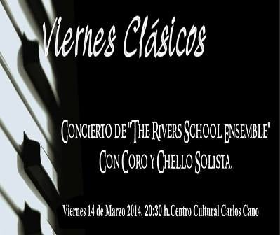 El ciclo de los Viernes Clásicos propone disfrutar de la interpretación del coro y solista de chelo The Rivers School Ensemble. Con temas de Paul Simon, Billy Joel, Randall Thompson y música folk de Brasil, Escocia, Irlanda, España y Canadá.