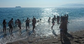 Es el segundo año de una iniciativa destinada a que los adolescentes sin recursos cuyos progenitores se encuentran en situación de desempleo puedan disfrutar de unos días de asueto en la costa. Una oportunidad que han aprovechado para realizar juegos de magia, gymkanas, guerras de globos, fútbol y demás propuestas propias de su edad, además de los paseos cerca del mar. Once monitores se han encargado de asegurar el bienestar de los chicos y chicas, que han contado además con el buen hacer de dos cocineros. Desde la Asociación Ecosociocultural Miguel Hernández se han mostrado muy satisfechos con la repuesta de empresas y vecinos, tanto de La Zubia como de Torrenueva, así como de la participación de personas anónimas, que «han demostrado otro año más su generosidad». El Ayuntamiento de Torrenueva ha cedido las instalaciones de las antiguas escuelas y los miembros de protección Civil de la localidad costera han estado atentos para preservar su seguridad. A ellos se ha sumado el apoyo desinteresado de la empresa de transporte Framar, de panaderías, farmacias y tiendas de alimentación de La Zubia. Con el esfuerzo de todos se ha logrado, según explica Alicia García, coordinadora del campamento junto a Cristina Molina, que los estudiantes pasen unos días de recreo en la playa aprendiendo y participando. Ante la alta demanda por parte de las familias para el próximo año van a intentar obtener fondos y ayudas para programar dos turnos. El pasado año el campamento solidario se llevó a cabo en el camping Huerta Romero de Castell de Ferro y ante el éxito obtenido en esta edición y la alta demanda, el objetivo es mejorar la oferta para que ningún joven de La Zubia se quede sin disfrutar de un fin de semana en el campamento solidario.