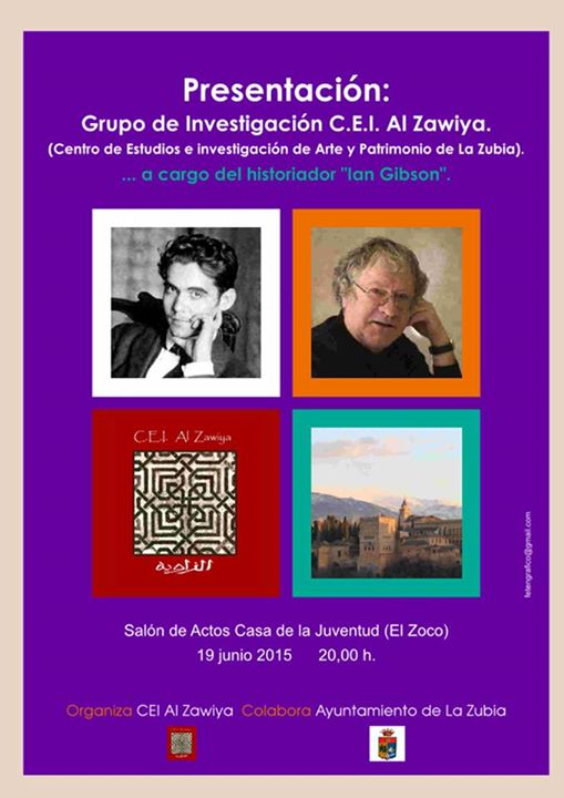 El Centro de Estudios e Investigaciones de Arte y Patrimonio de La Zubia (CEI) Al Zawiya prepara una presentación por todo lo alto. Ian Gibson, hispanista y biografo de Lorca, Machado y Dalí viene a la localidad como invitado de honor para asistir a la presentación oficial del grupo de investigación ante sus vecinos y el resto de granadinos.