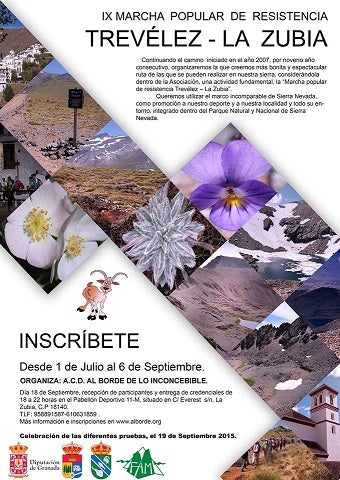 Una cita que permite a los participantes recorrer el Parque Nacional de Sierra Nevada. Se va a celebrar el el próximo día 19 de septiembre. ... Organizada por la Asociación Al Borde de lo Inconcebible, toda la información de la actividad se encuentra en la página web en el siguiente enlace: http://alborde.org/travesia_trevelez.html Para participar es posible inscribirse directamente en la web. Para cualquier aclaración se puede contactar en la dirección de correo travesiatrevelezlazubia@gmail.com. La IX edición de la Marcha Popular de Resistencia Trevélez-La Zubiaque presenta novedades respecto a otras ediciones anteriores, según explica el presidente de Al Borde de lo Inconcebible, Miguel Jiménez Sola. La salida es desde Trevélez a las 04:00 horas por La Vereda Del Chorrillo; para continuar hasta la Laguna de La Caldera y seguir hasta La Carihuela del Veleta... La ruta exige buena preparación física y equipación para condiciones adversas, siendo siempre guiada por miembros de la organización.