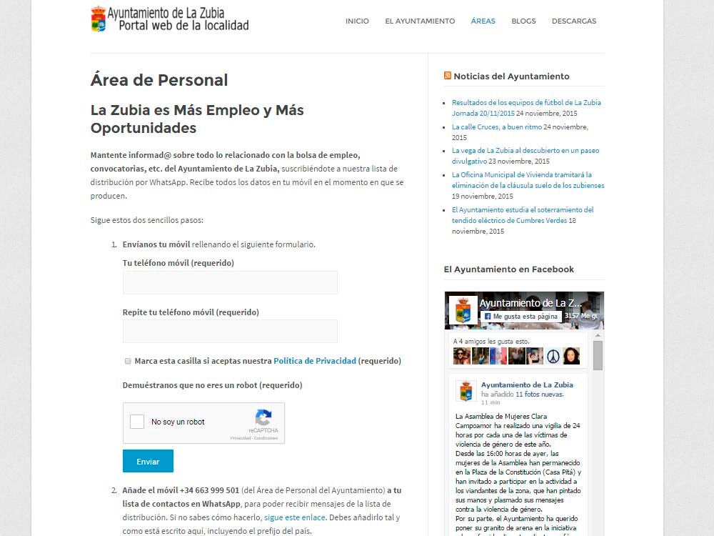 Para poder disfrutar del servicio, los interesados deberán suscribirse en la lista de distribución por WhatsApp creada por la concejalía a través de la página ... web del Ayuntamiento: http://www2.ayuntamientolazubia.com/area-de-personal/ Con esta iniciativa se persigue informar y ofrecer todas las alternativas posibles de trabajo a los vecinos y vecinas de la localidad.